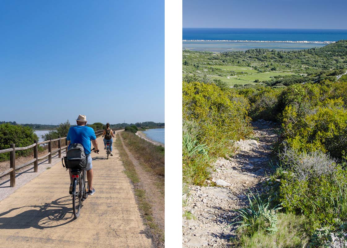Pour les amateurs de balades, un vaste réseau de pistes cyclables permet de découvrir ces panoramas uniques en toute tranquillité, en longeant les étangs, les vignes et la mer.